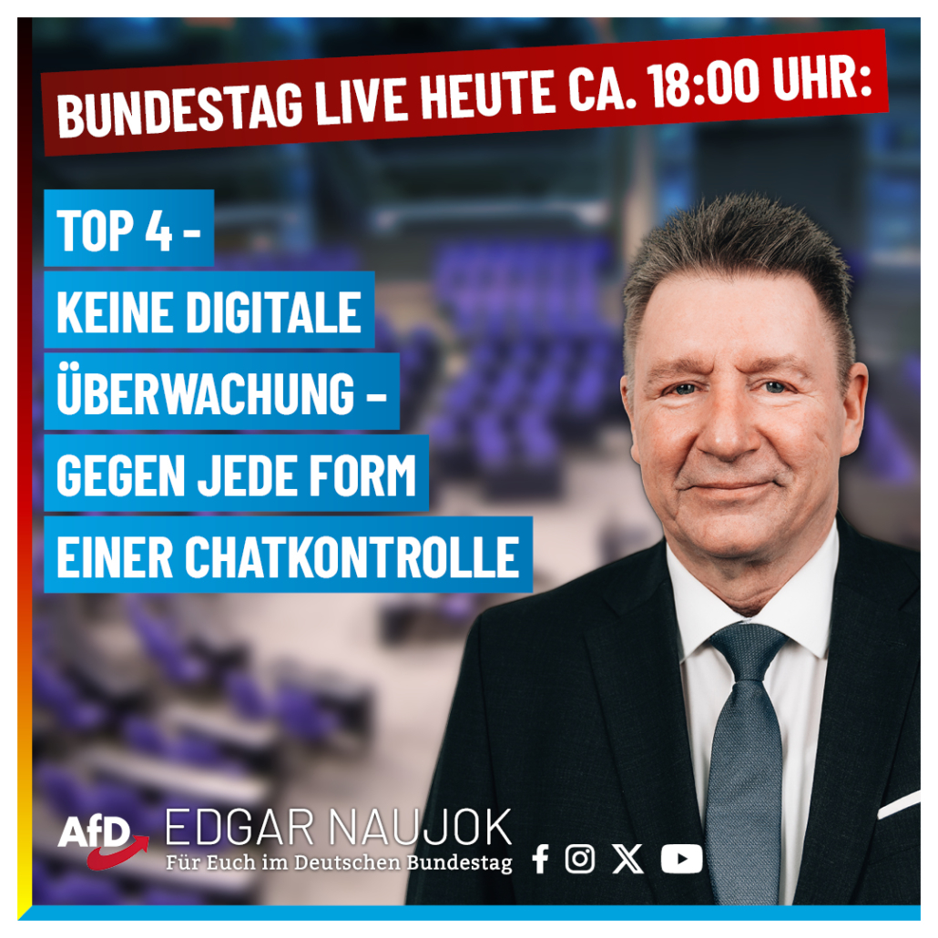 Edgar Naujok: Bundestag LIVE: heute – TOP 4 – Keine digitale Überwachung – Gegen jede Form einer Chatkontrolle