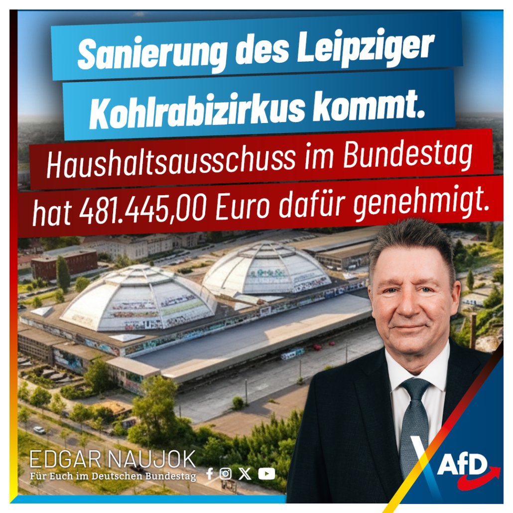 Der Bundestagsabgeordnete Edgar Naujok zeigt sich nach der Sitzung des Haushaltsausschusses erfreut, dass die Stadt Leipzig 481.445,00 Euro zur Sanierung des Kohlrabizirkus aus dem 14. Denkmalschutz-Sonderprogramm erhält: